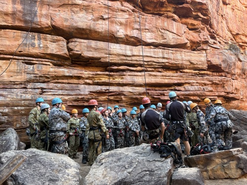 A long march into the Murchison gorge and some spirited climbing saw cadets receive abseiling instruction, then participating and having a great time.